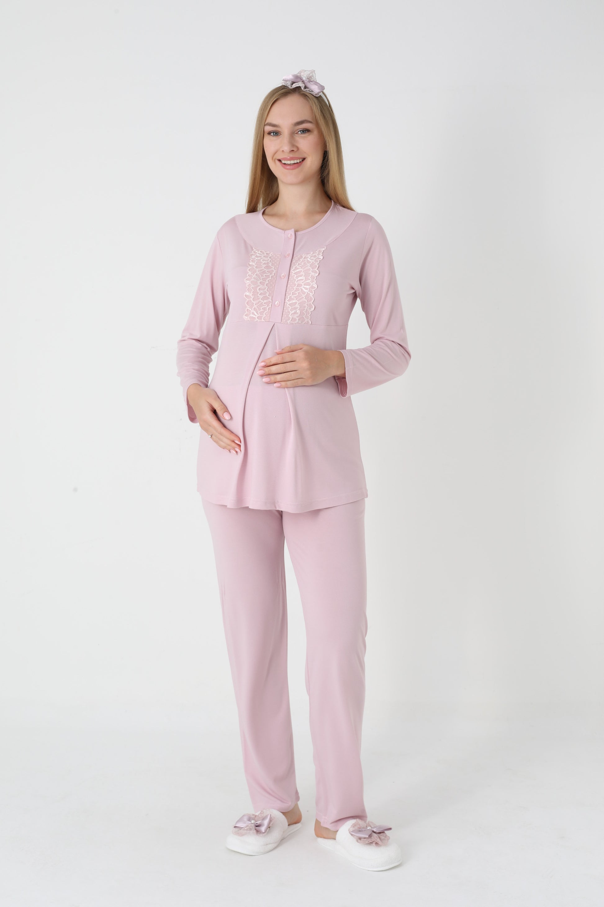 3’Lü Pijama Takımı - Kapitone Sabahlıklı Lohusa Hamile Takım - 3454