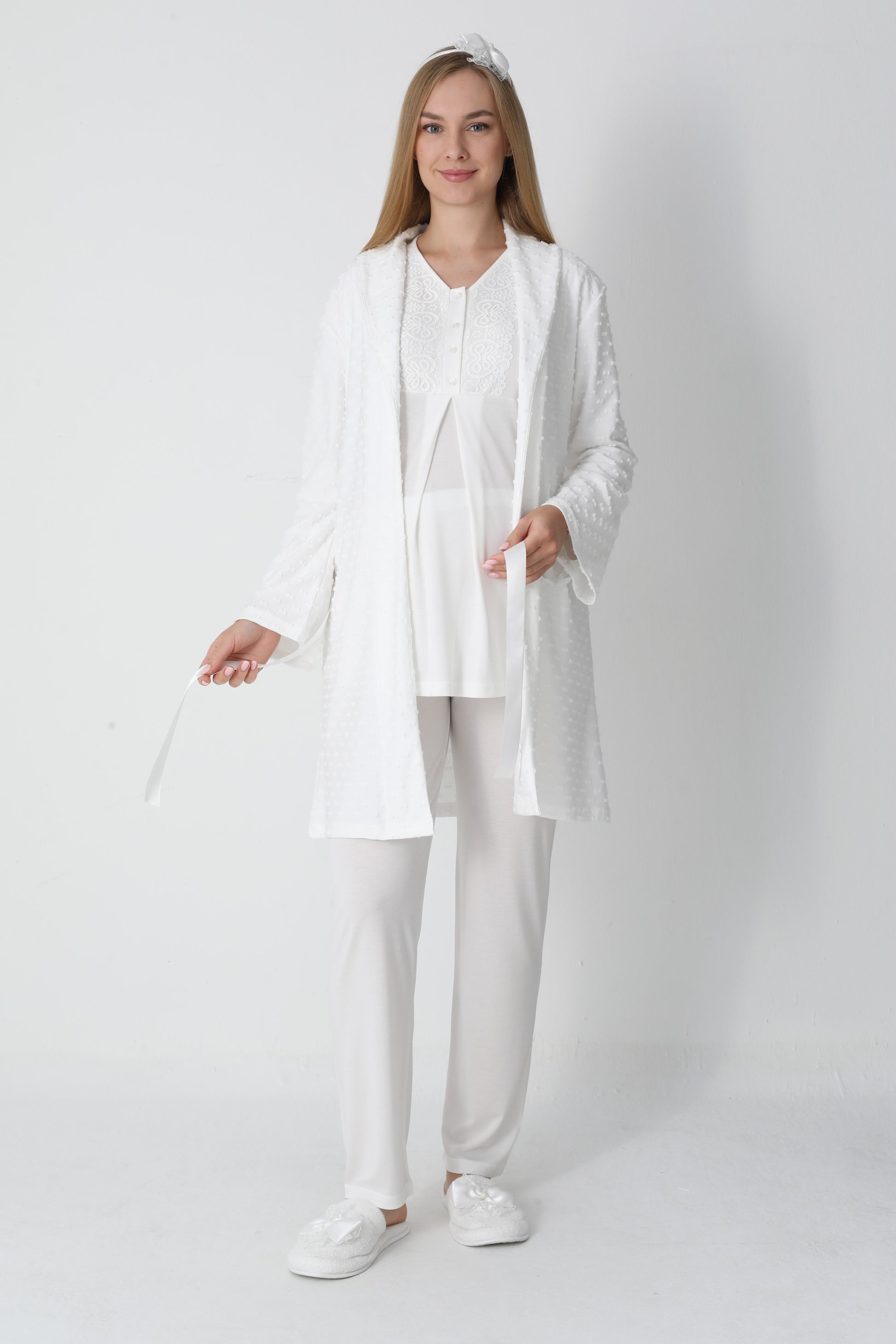3’Lü Pijama Takımı - Kapitone Sabahlıklı Lohusa Hamile Takım - 3455