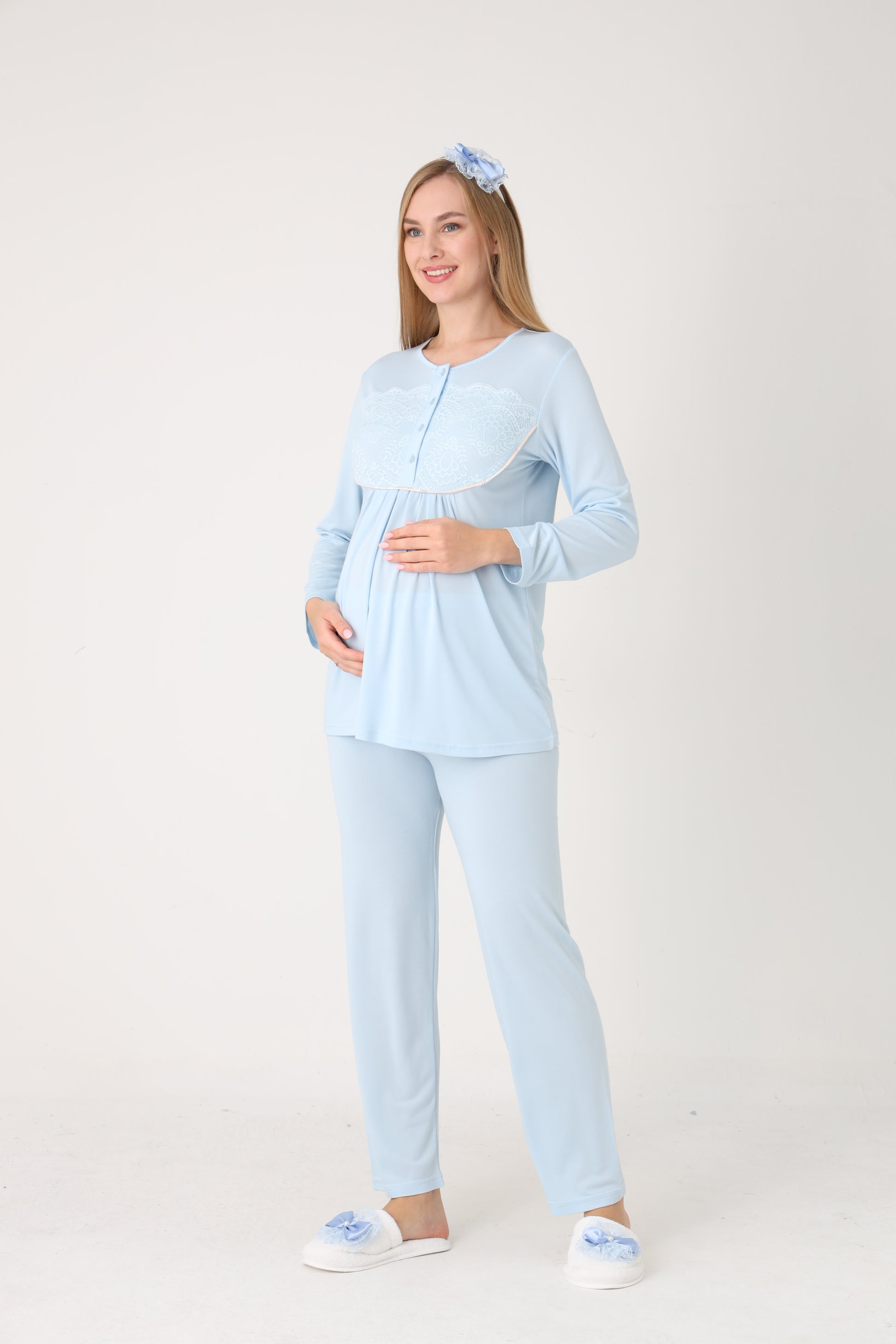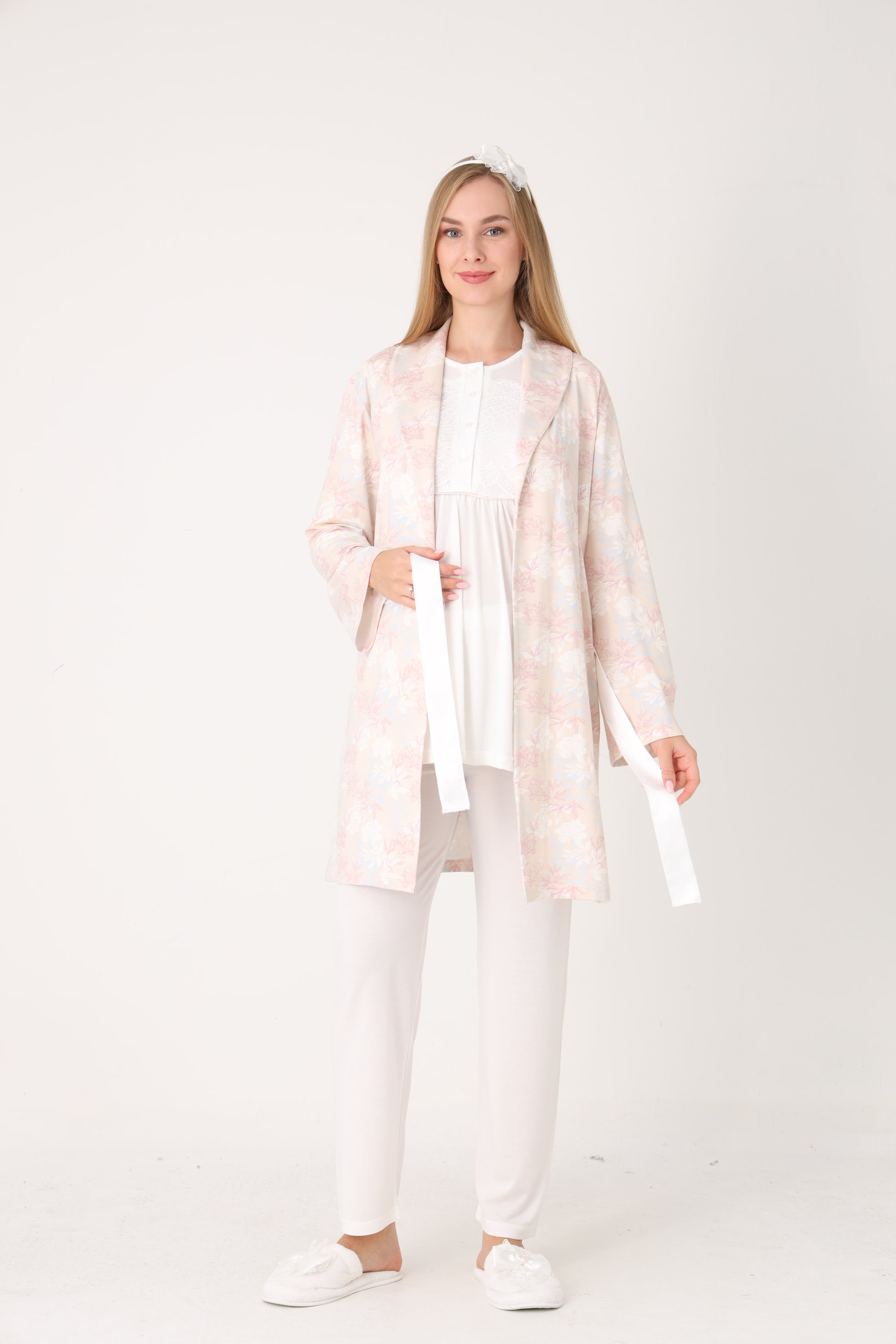 3’Lü Pijama Takımı - Viskon Sabahlıklı Lohusa Hamile Takım - 3456
