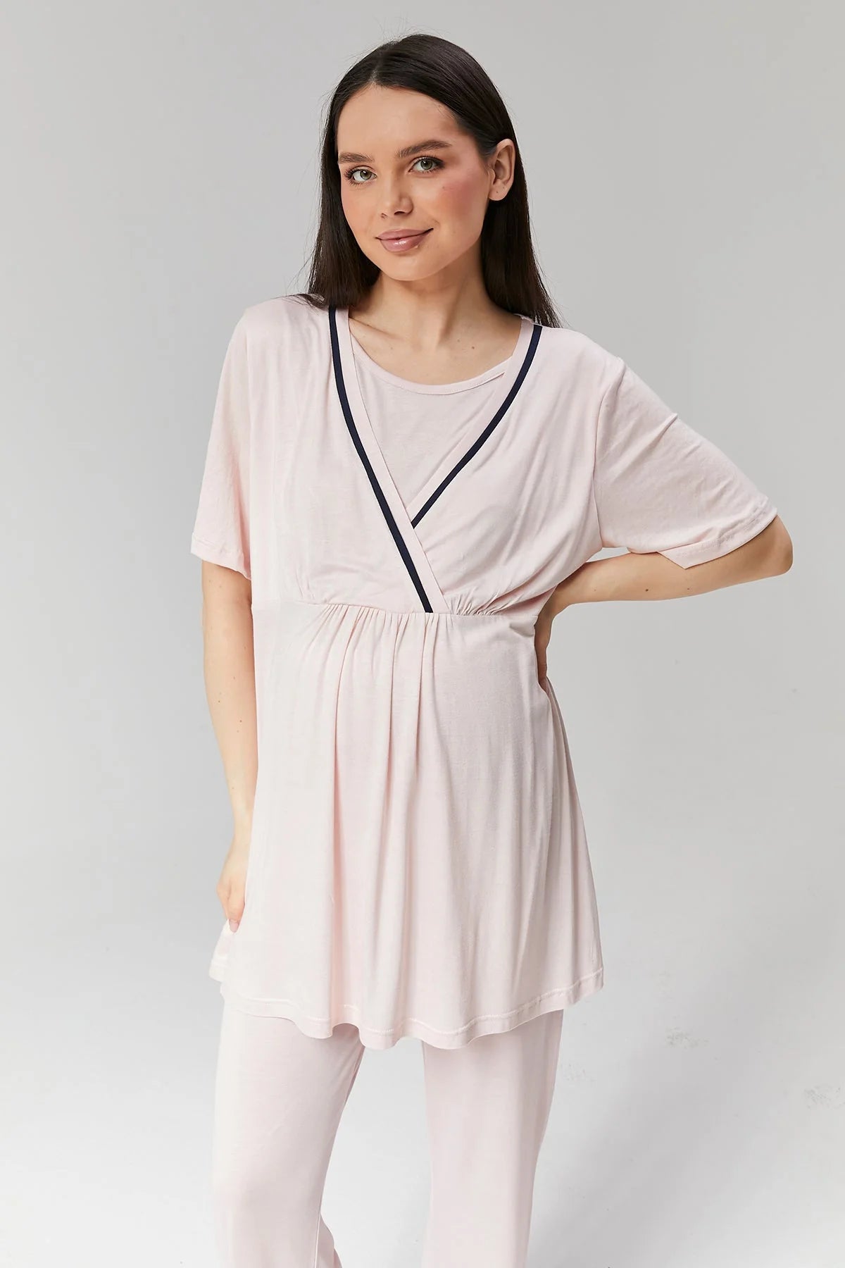 Doğum öncesi ve sonrası kullanım için ideal, konforlu ve şık sabahlıklı lohusa Pijama takımı. Emzirme kolaylığı sunan pratik yapısı ve yumuşak dokusuyla hem hastane çıkışı hem evde kullanım için uygundur.