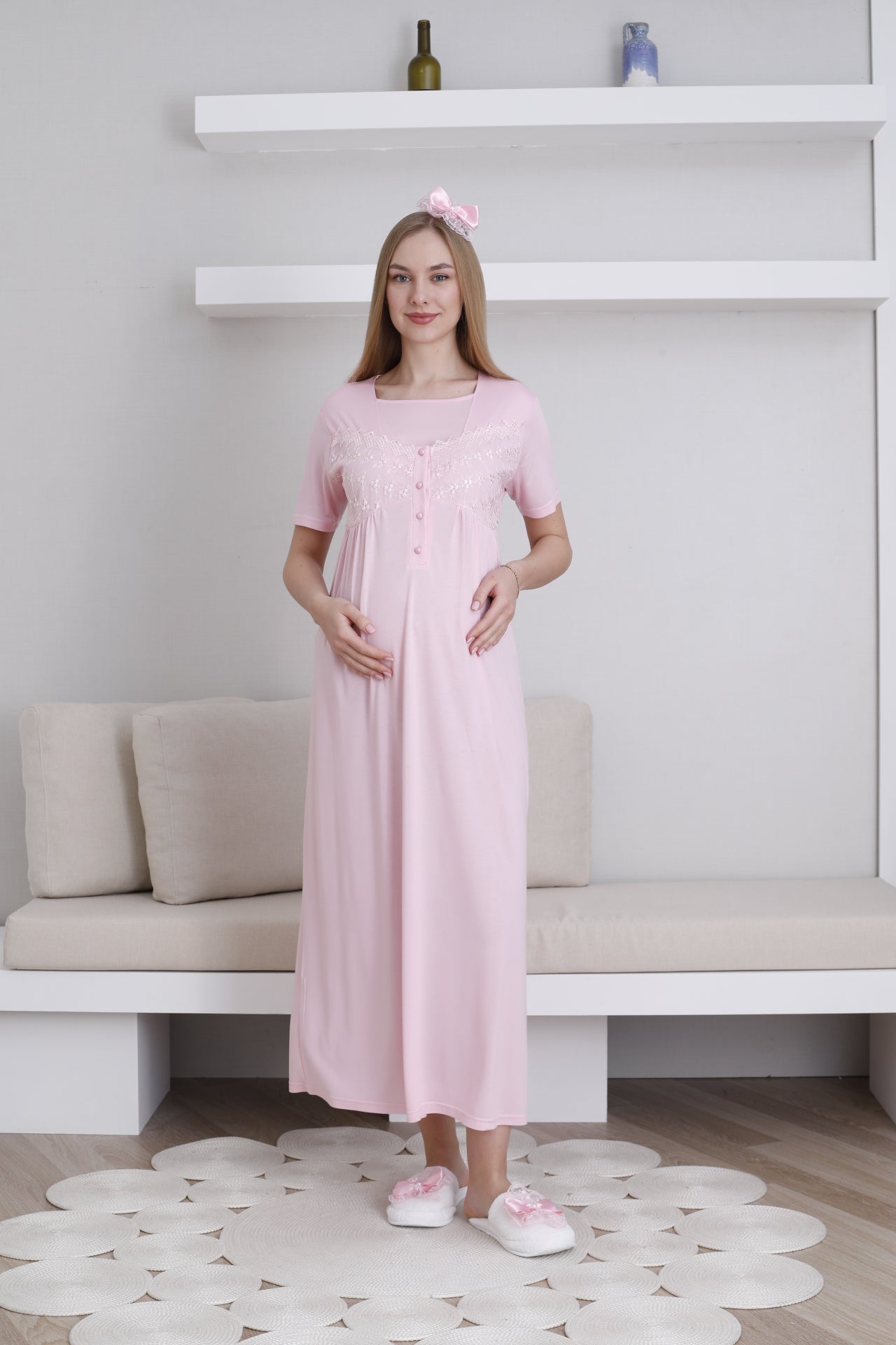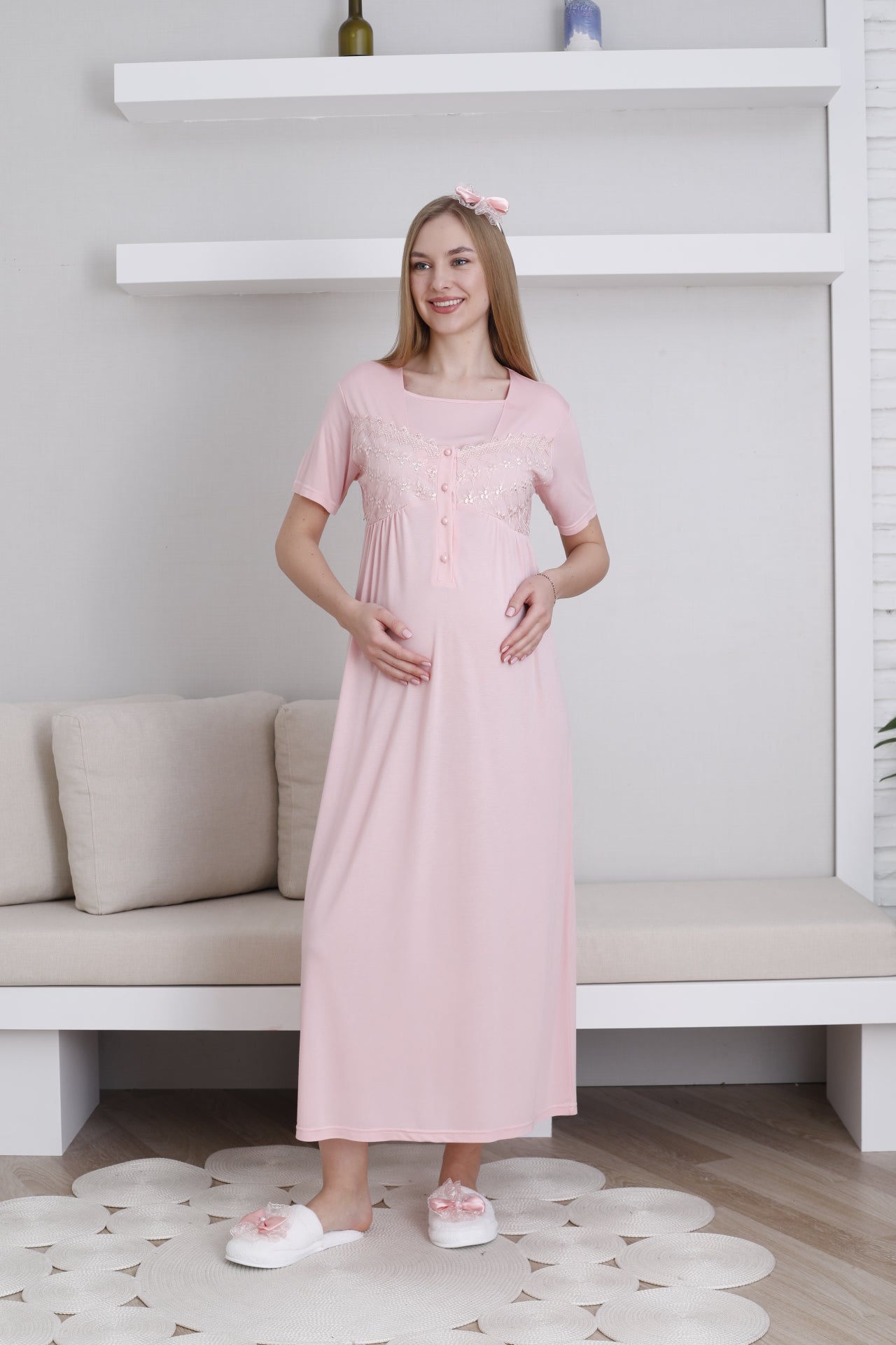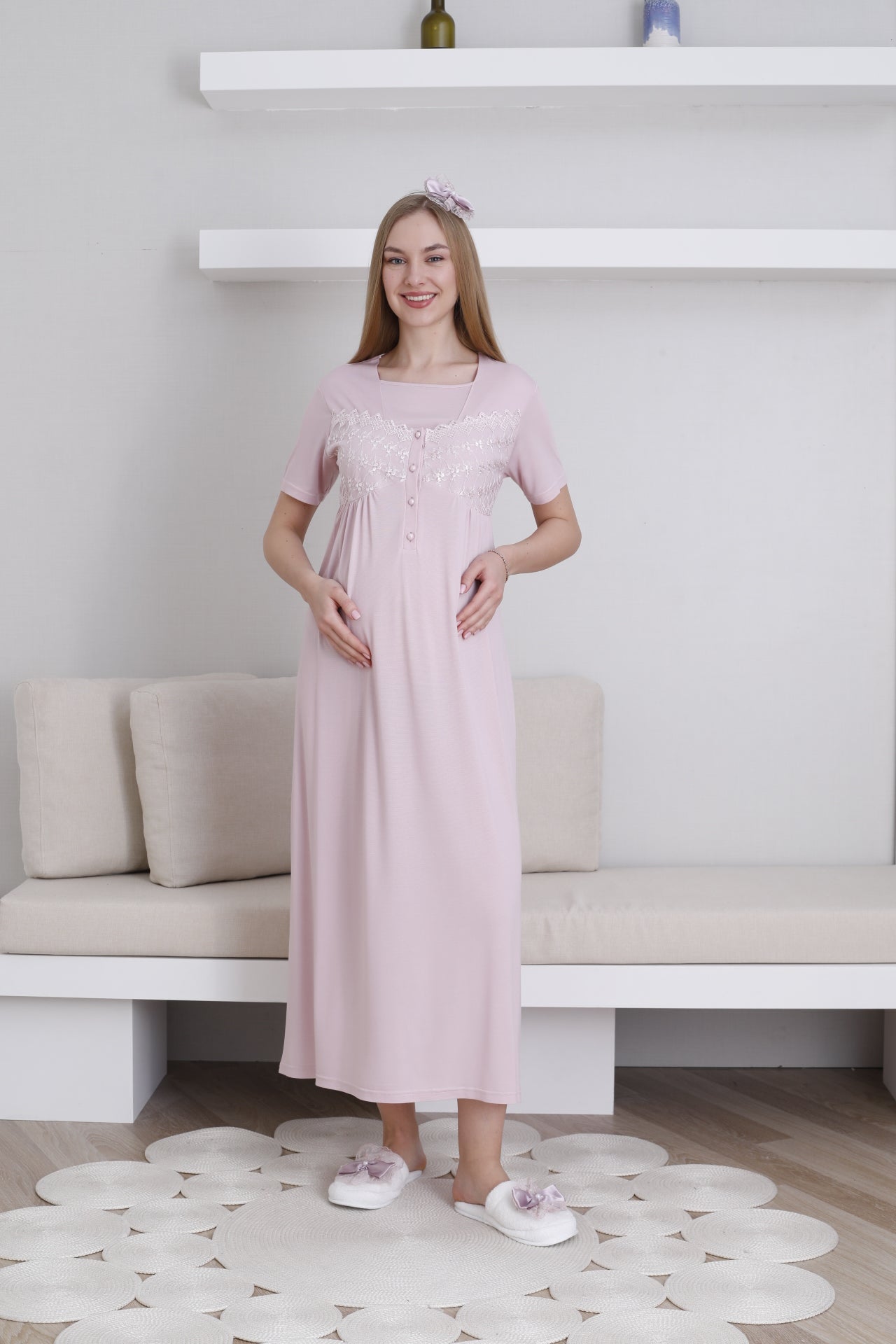 • Emzirme Kolaylığı: Önden düğmeli gecelik tasarımı, yeni anneler için pratik bir kullanım sunar.
