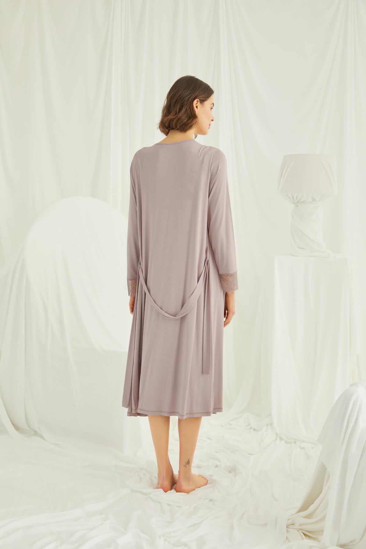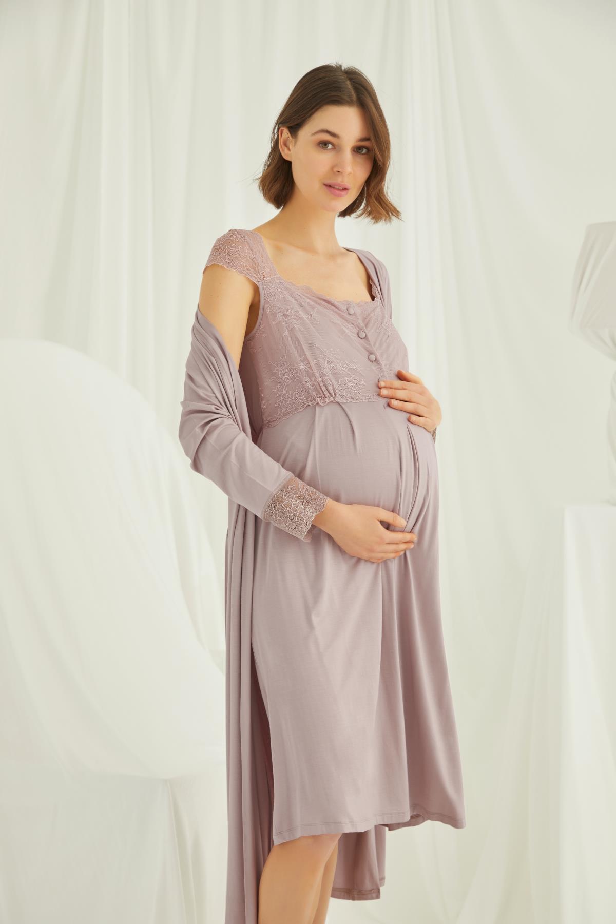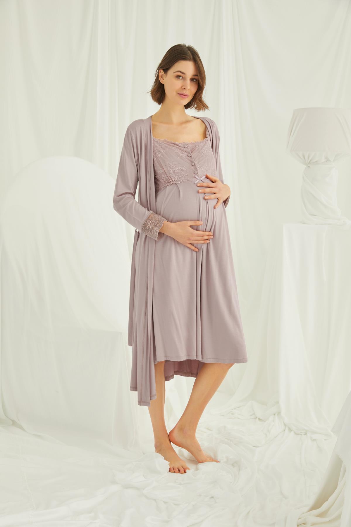 Dantelli Omuz Sabahlıklı Lohusa Gecelik Takımı - 18438