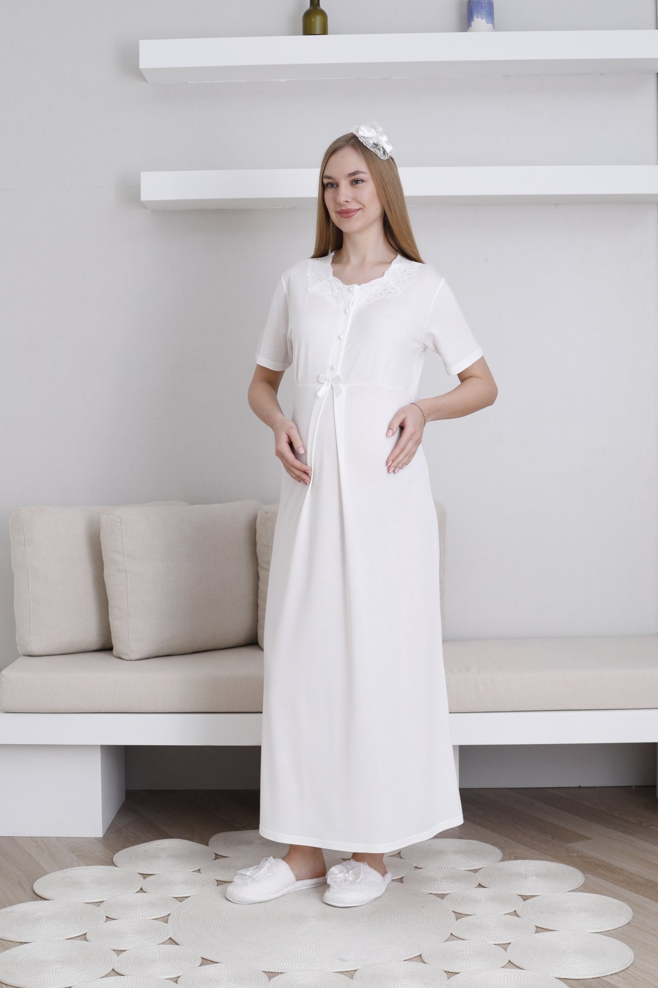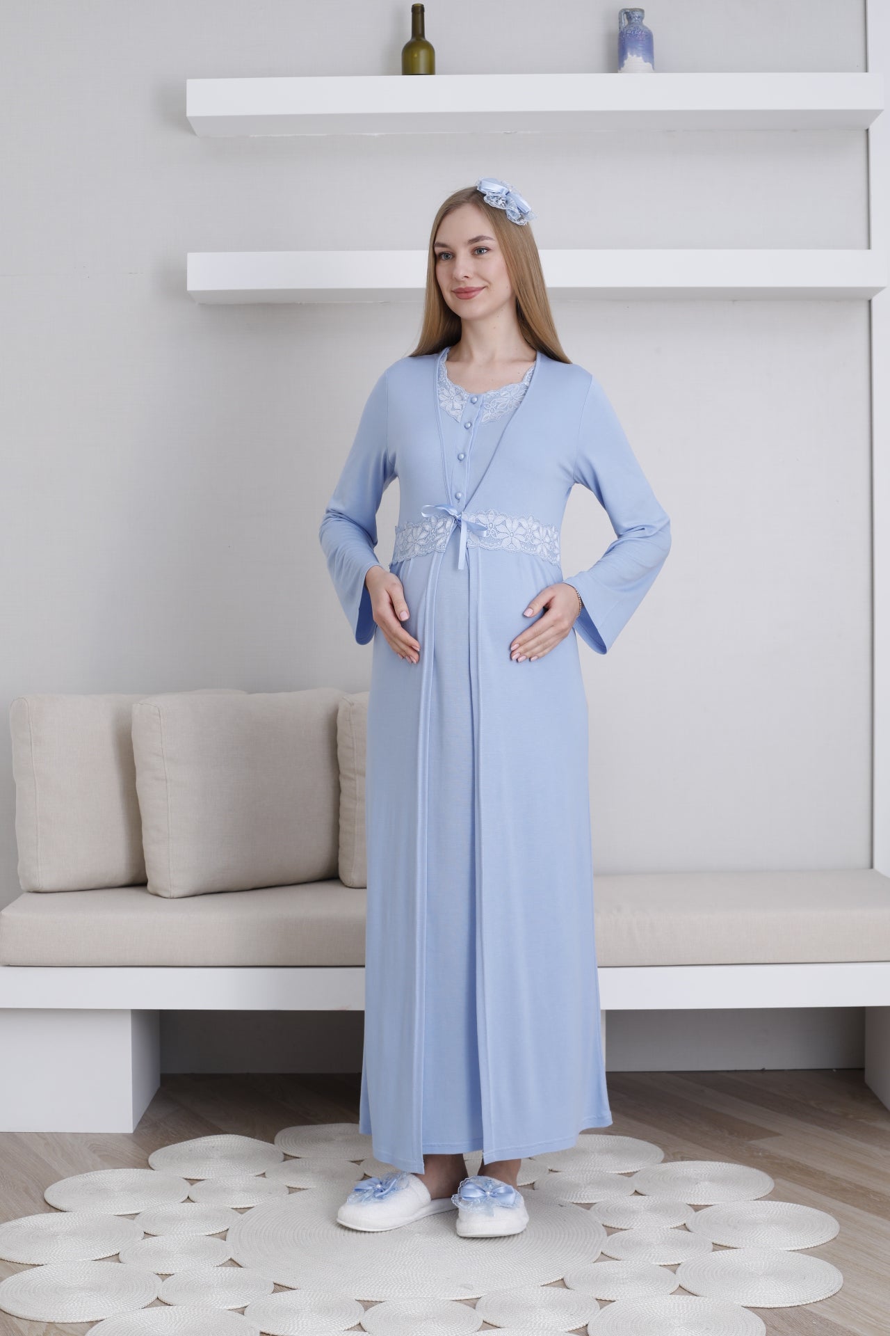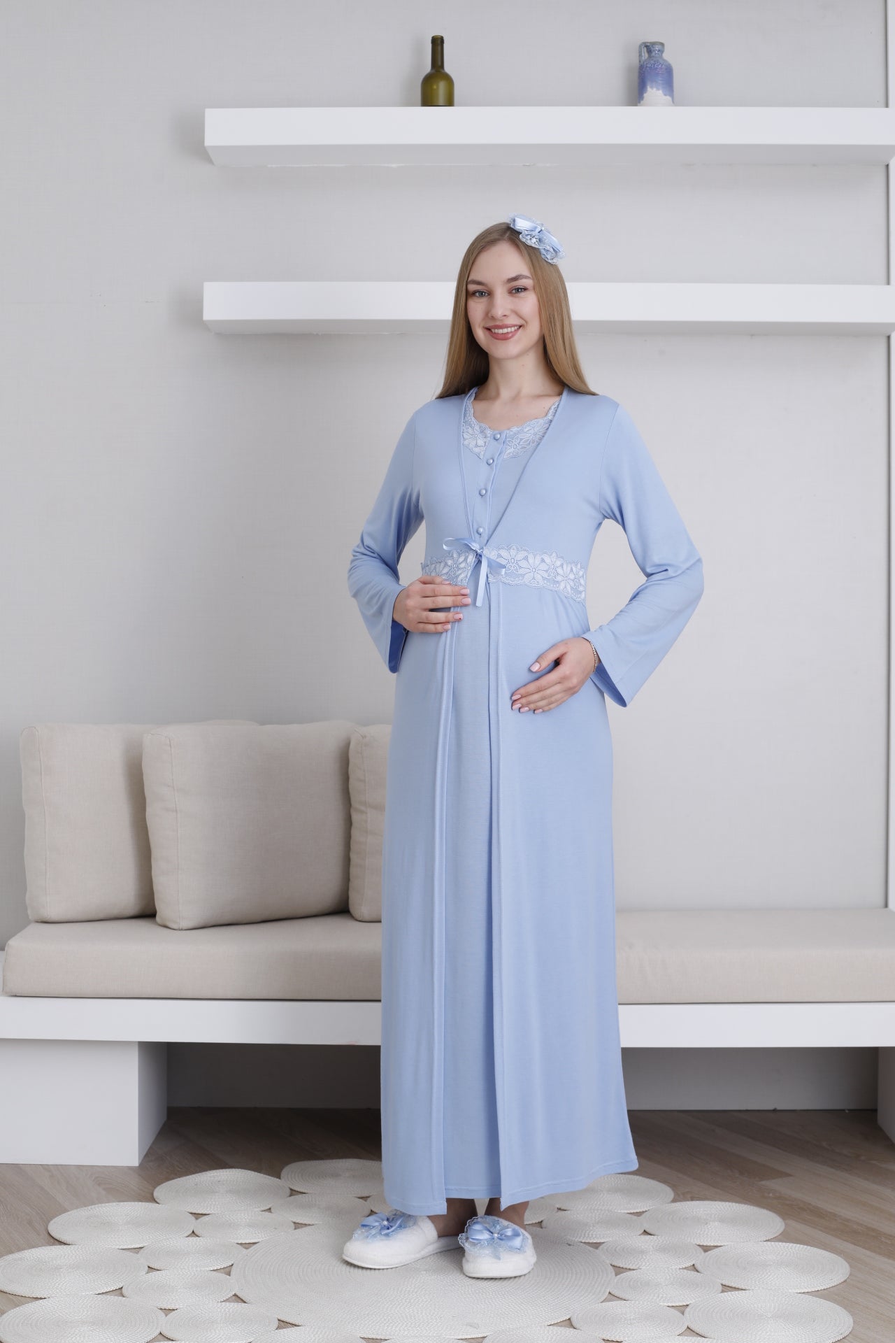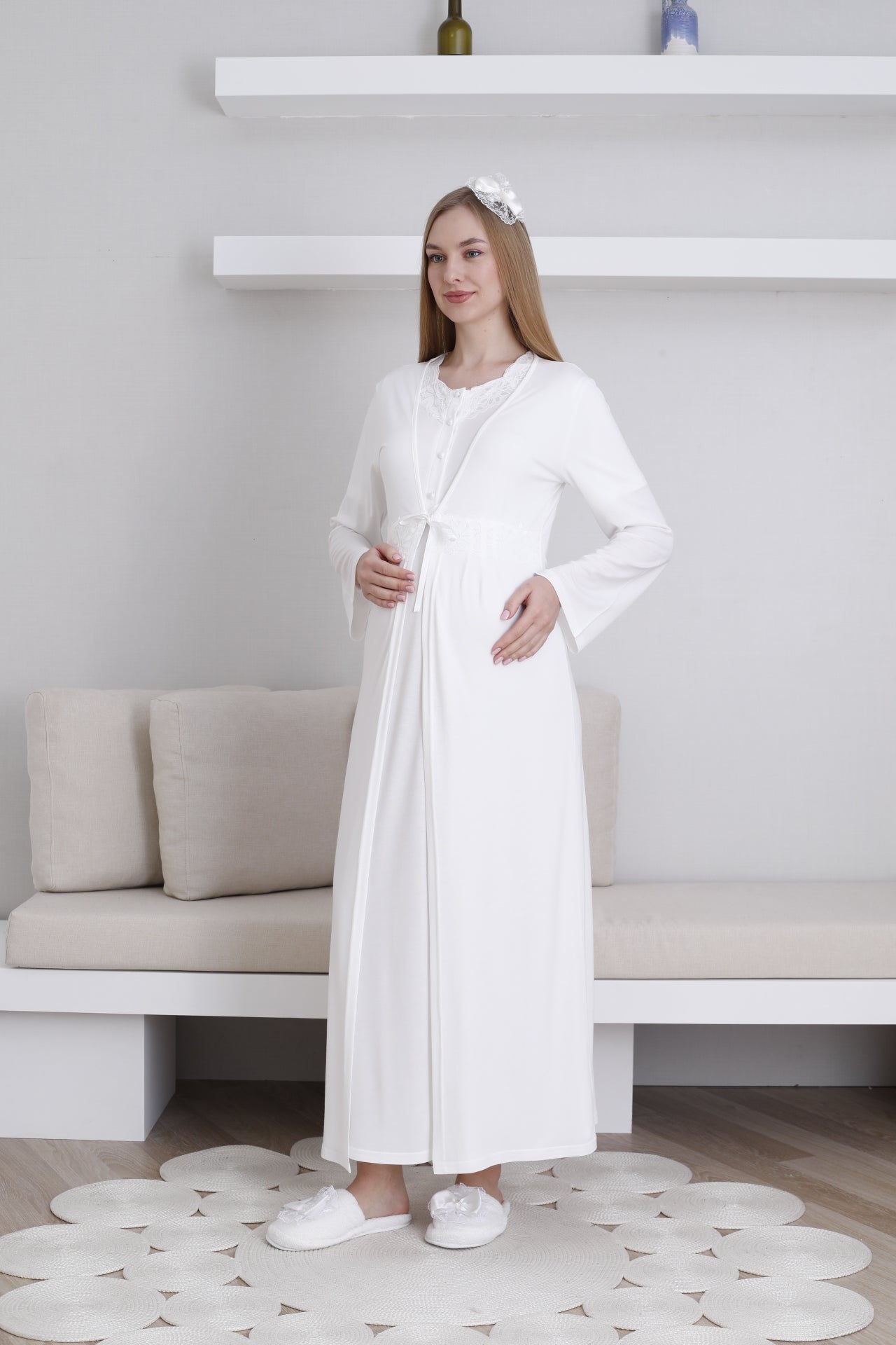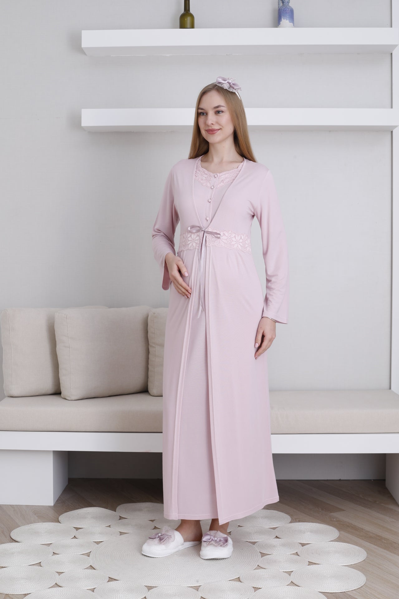 Dantelli Yaka Sabahlıklı Lohusa Gecelik Takımı - 2292