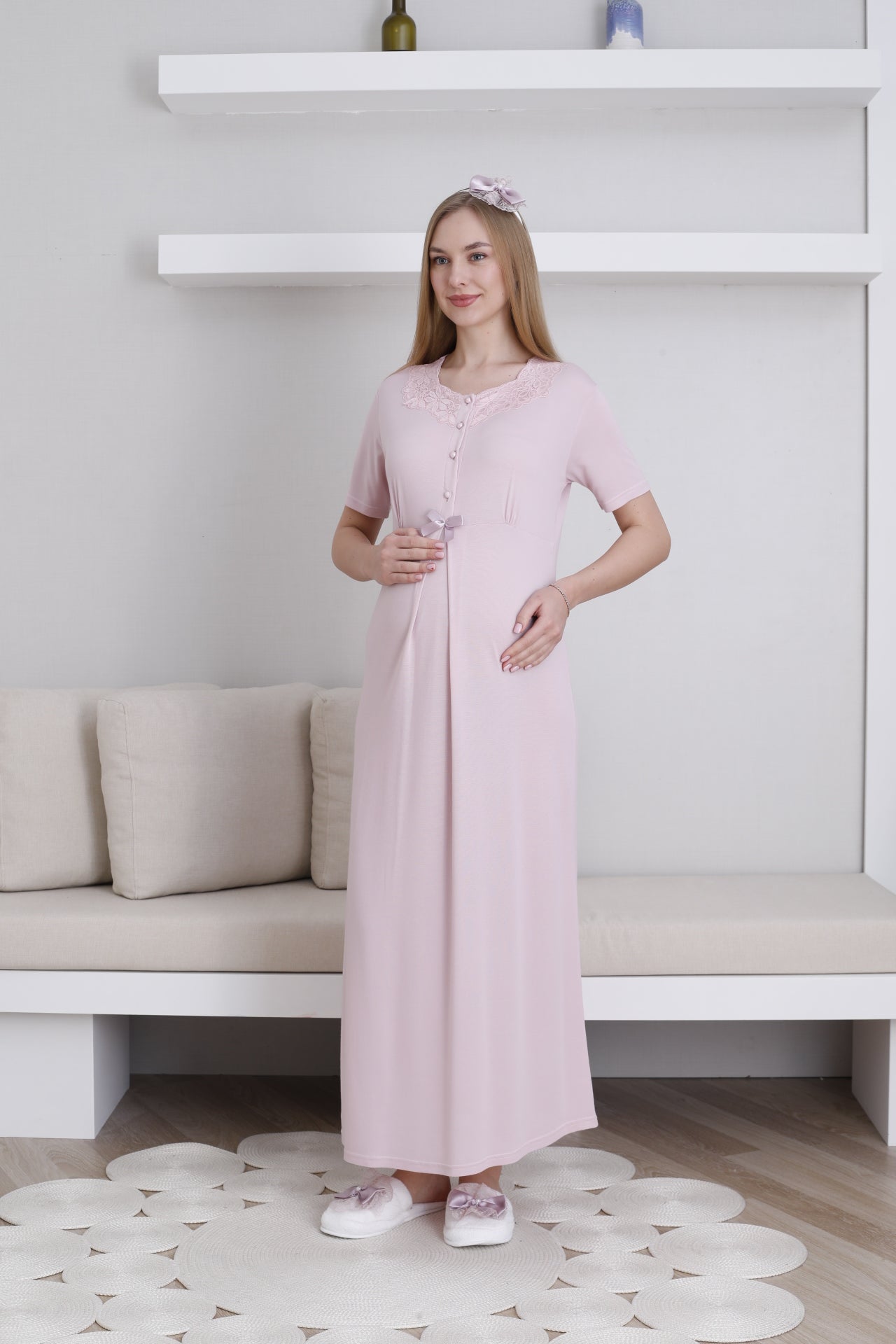 • Emzirme Kolaylığı: Önden düğmeli gecelik tasarımı, yeni anneler için pratik bir kullanım sunar.