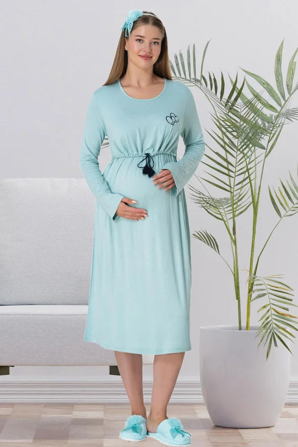 Emzirme Bölmeli Lohusa Hamile Gecelik Turkuaz - 5539