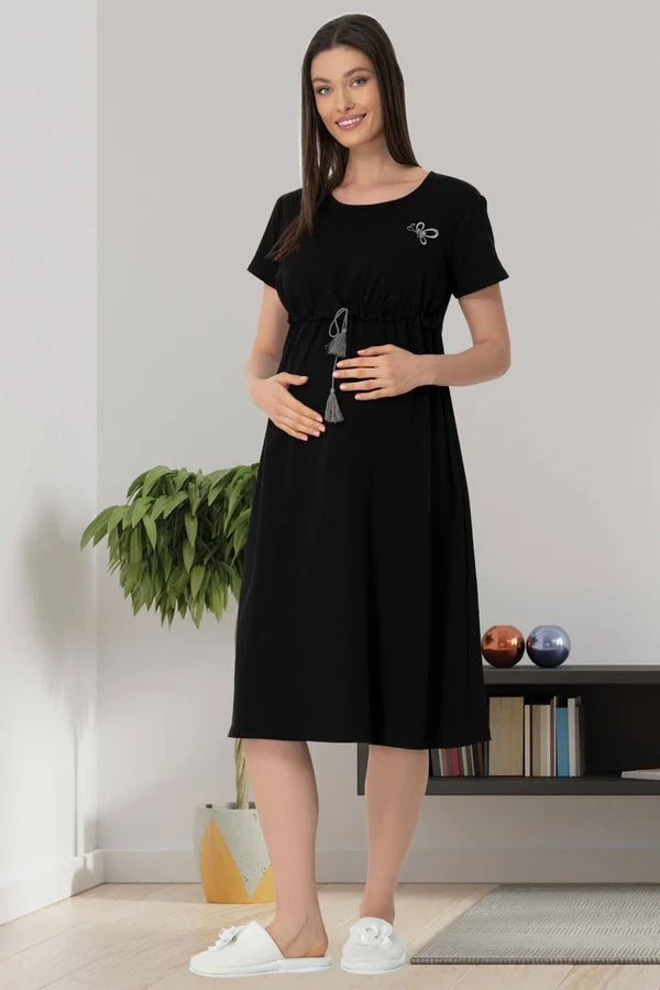 Emzirme Özellikli Lohusa Hamile Elbise Siyah - 5427