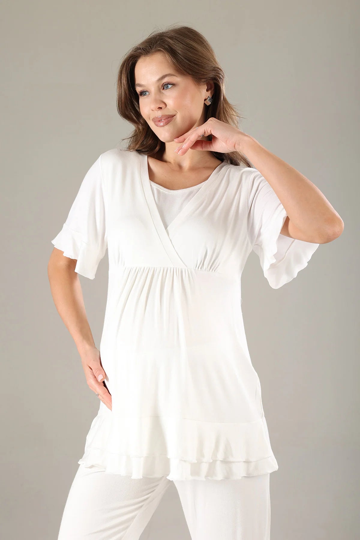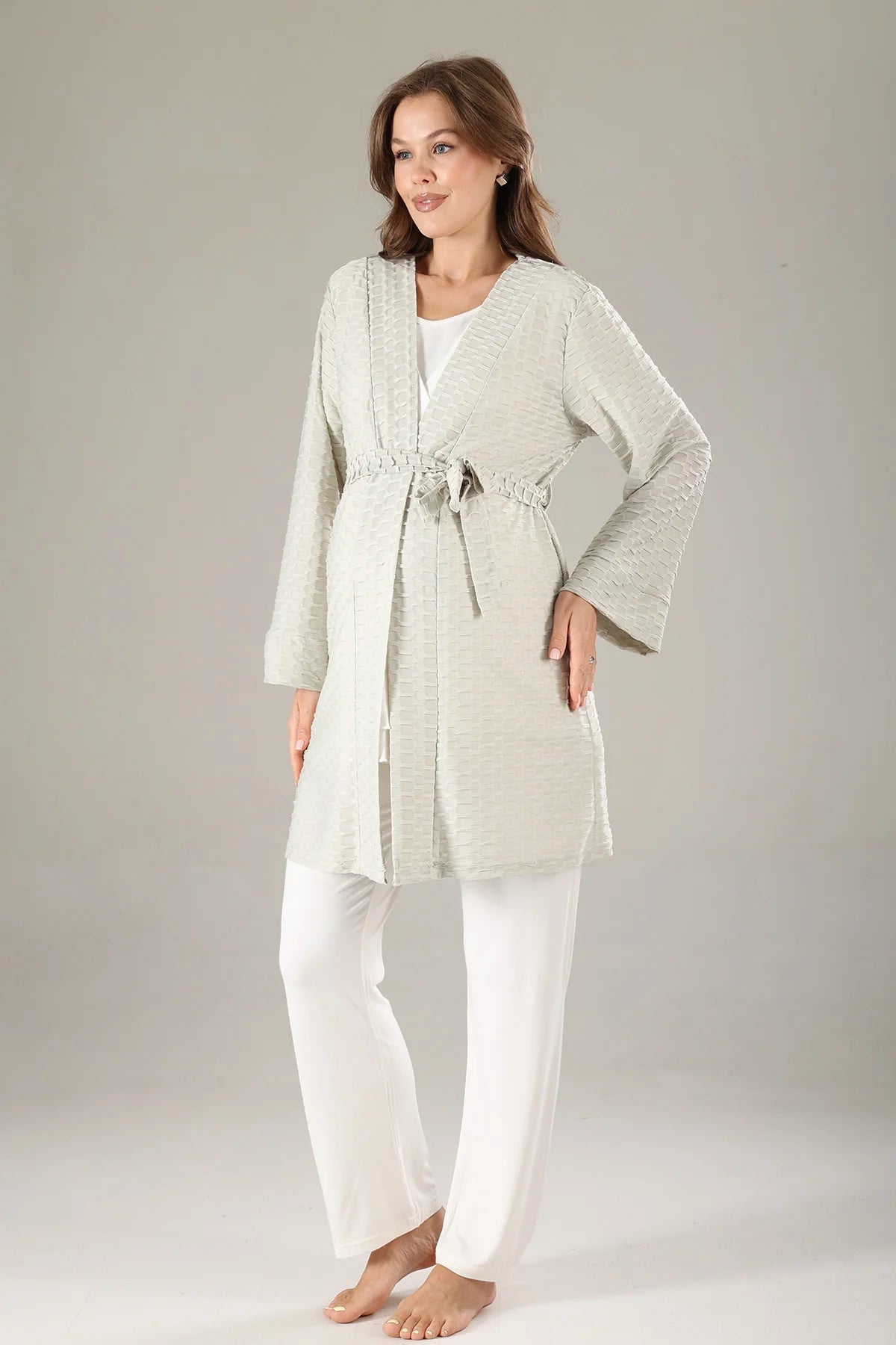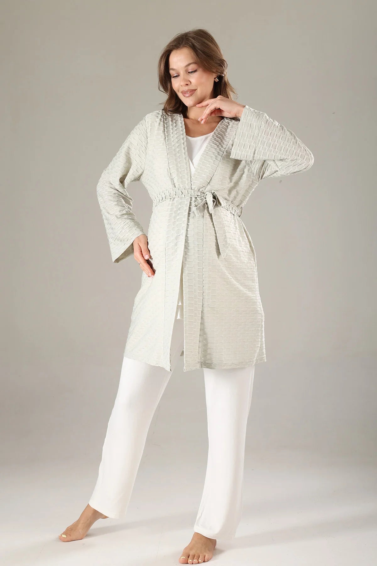 Gizli Emzirme Özellikli Sabahlıklı Pileli Lohusa Hamile Pijama Takımı Yeşil - 819