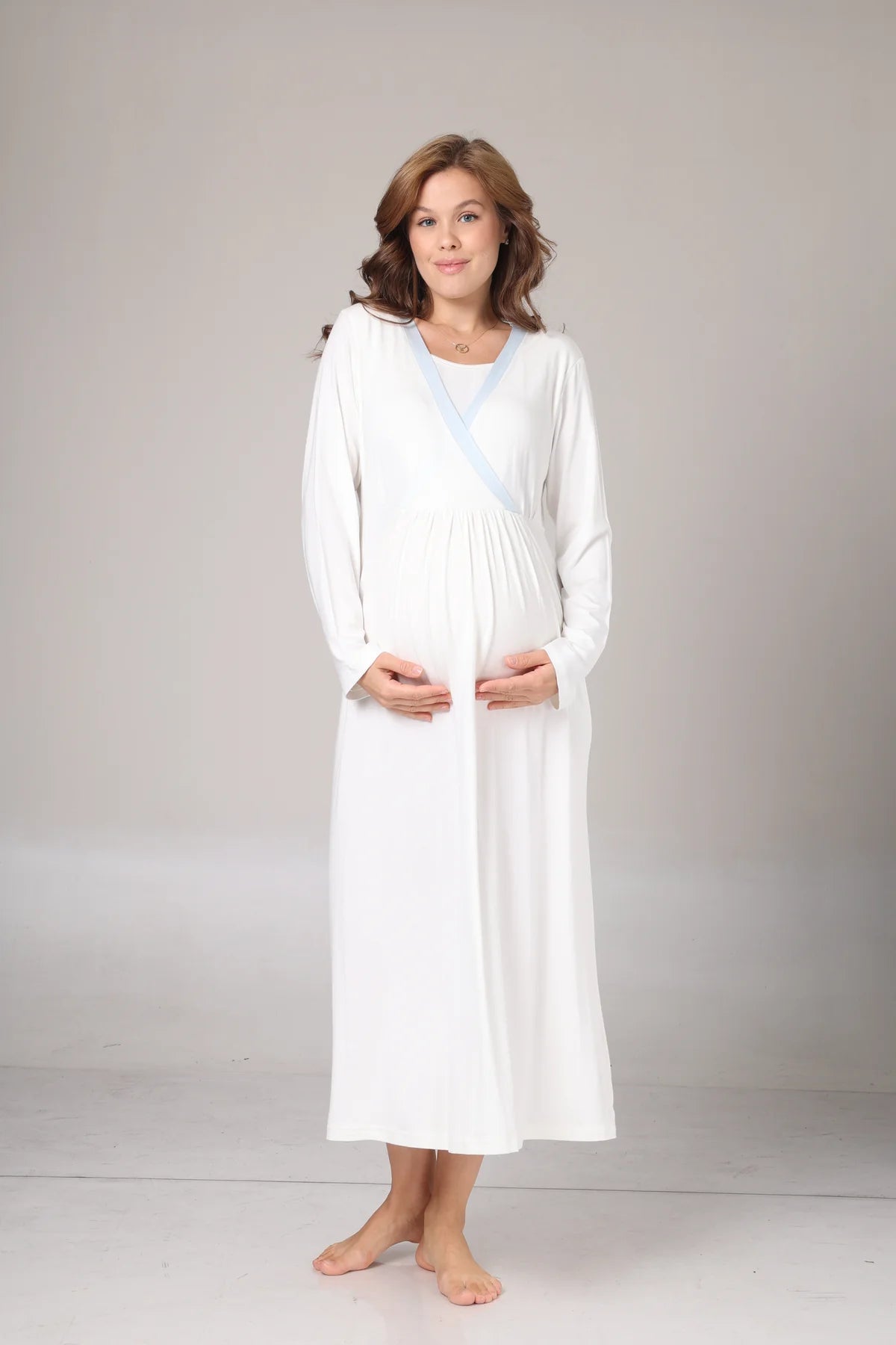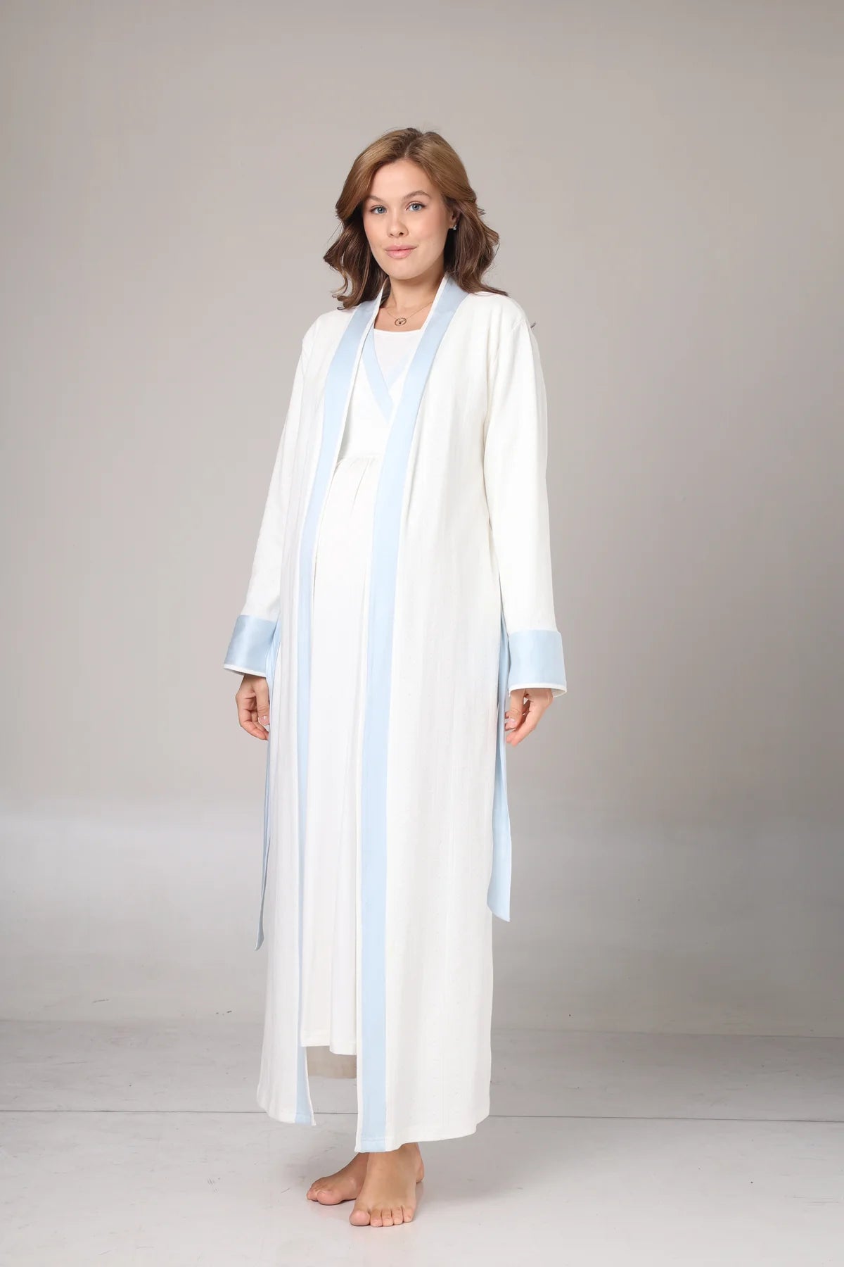 Doğum öncesi ve sonrası kullanım için ideal, konforlu ve şık sabahlıklı lohusa gecelik takımı. Emzirme kolaylığı sunan pratik yapısı ve yumuşak dokusuyla hem hastane çıkışı hem evde kullanım için uygundur.