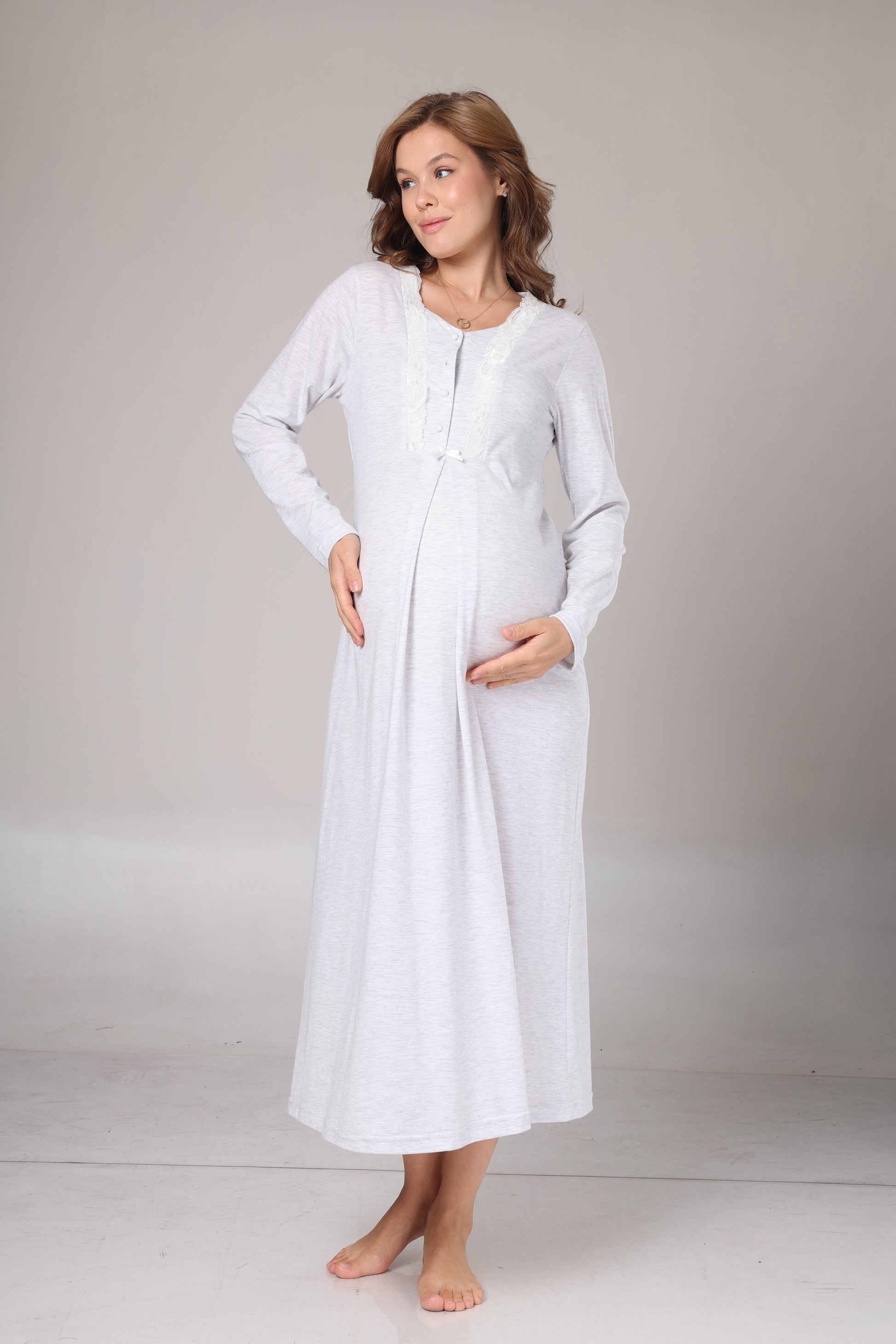 Doğum öncesi ve sonrası kullanım için ideal, konforlu ve şık sabahlıklı lohusa Gecelik takımı. Emzirme kolaylığı sunan pratik yapısı ve yumuşak dokusuyla hem hastane çıkışı hem evde kullanım için uygundur.