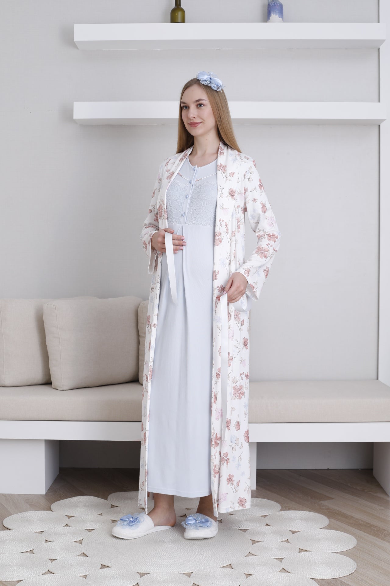 Lilyum Baskılı Sabahlıklı Lohusa Gecelik Takımı - 2294