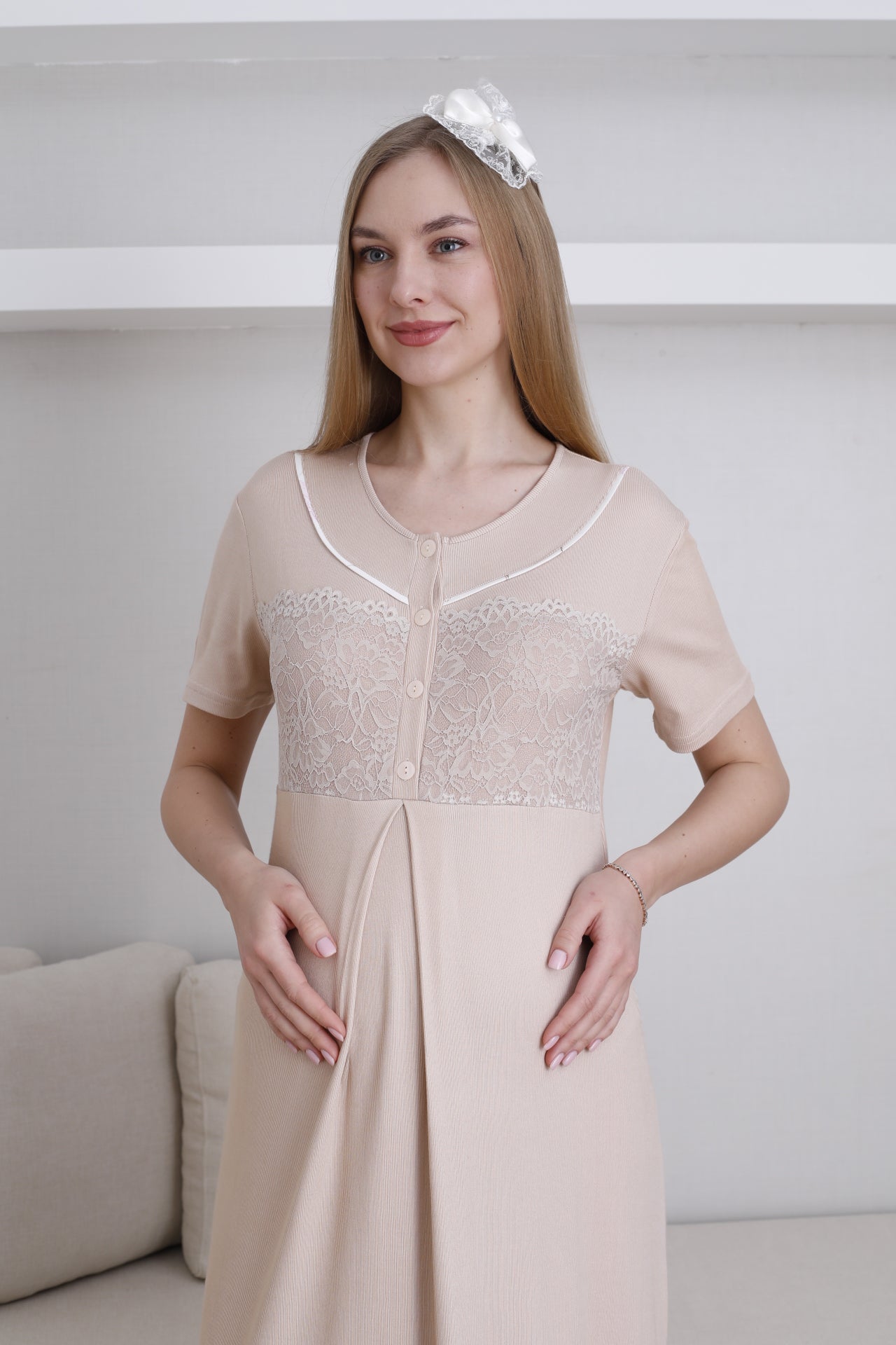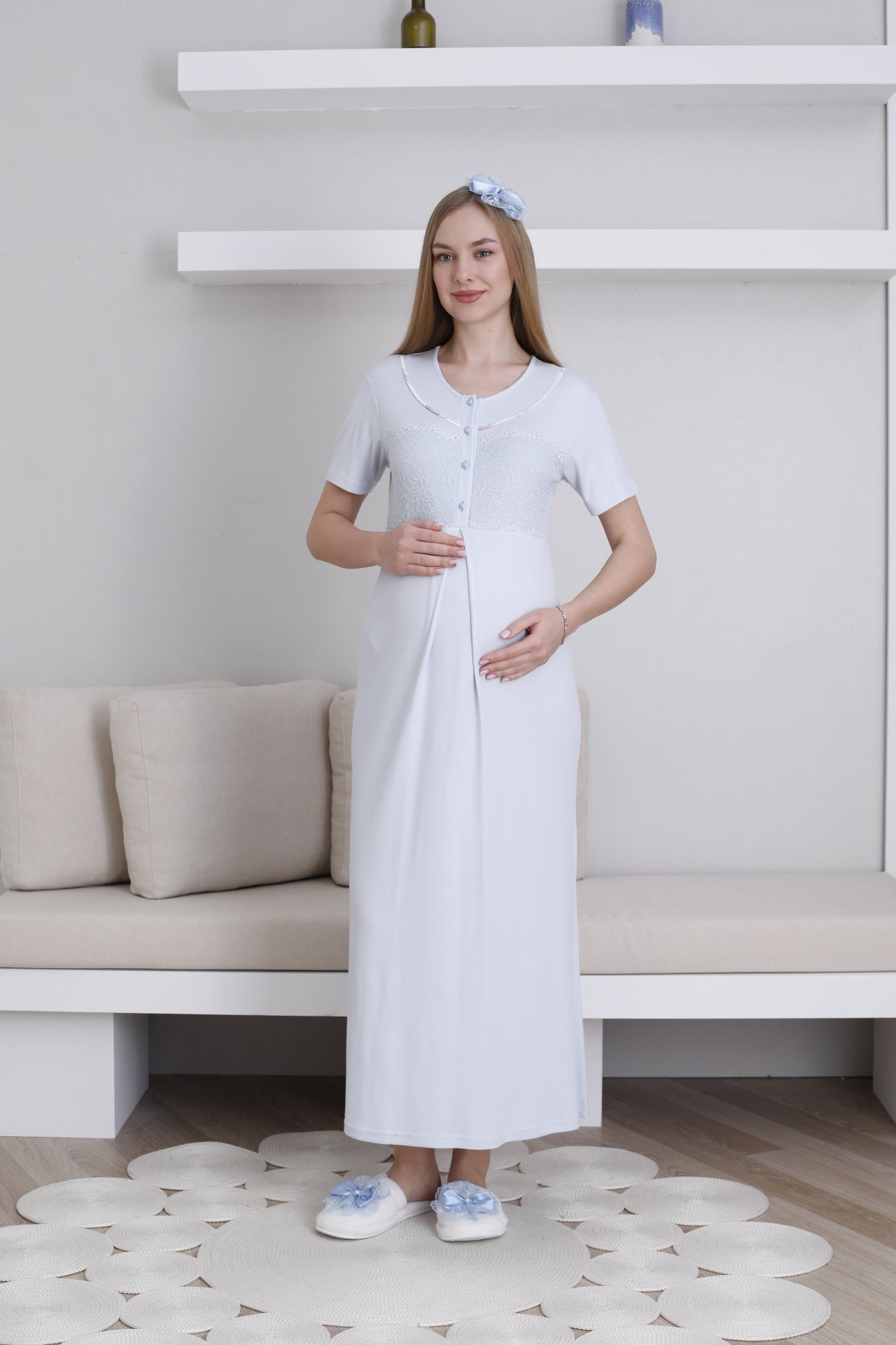 • Emzirme Kolaylığı: Önden düğmeli gecelik tasarımı, yeni anneler için pratik bir kullanım sunar.