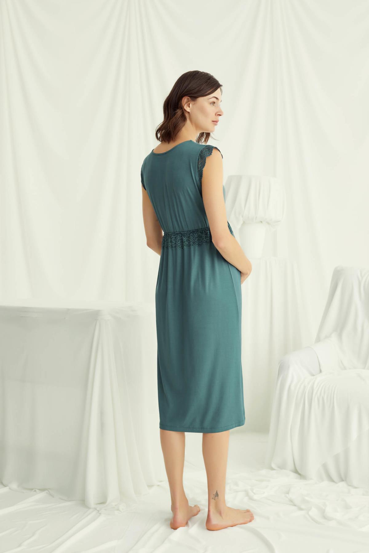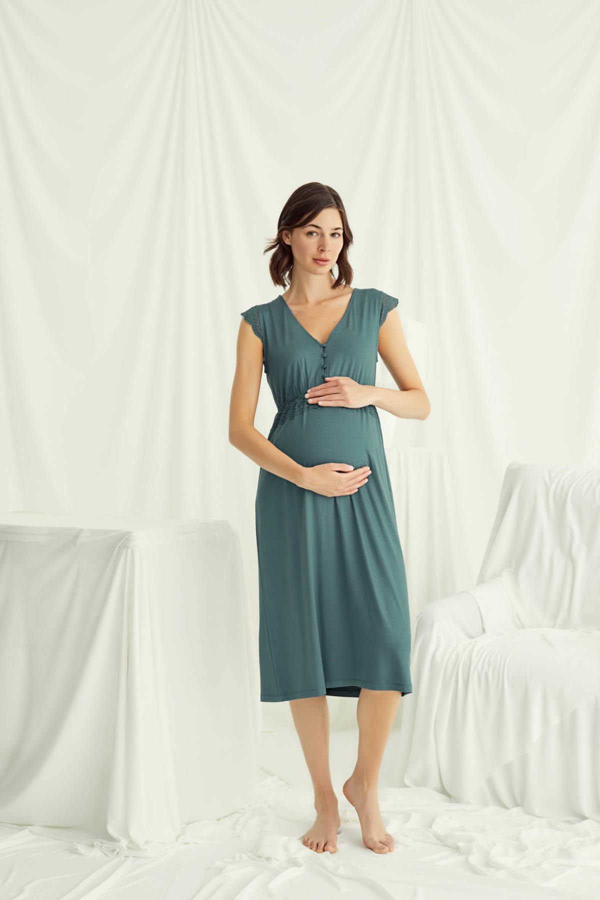 Önden Düğmeli Dantel Detaylı Lohusa Hamile Gecelik 18521