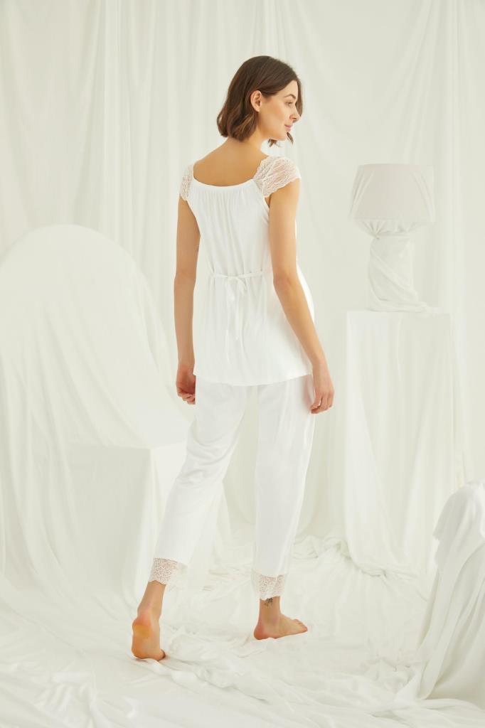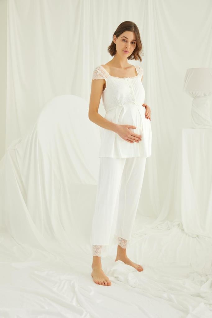 Önden Düğmeli Kısa Kollu Dantel Detaylı Lohusa Hamile Pijama Takımı 18303