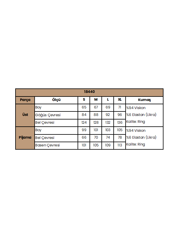 • 1 adet alt pijama: Geniş kalıplı olarak tasarlanmıştır.