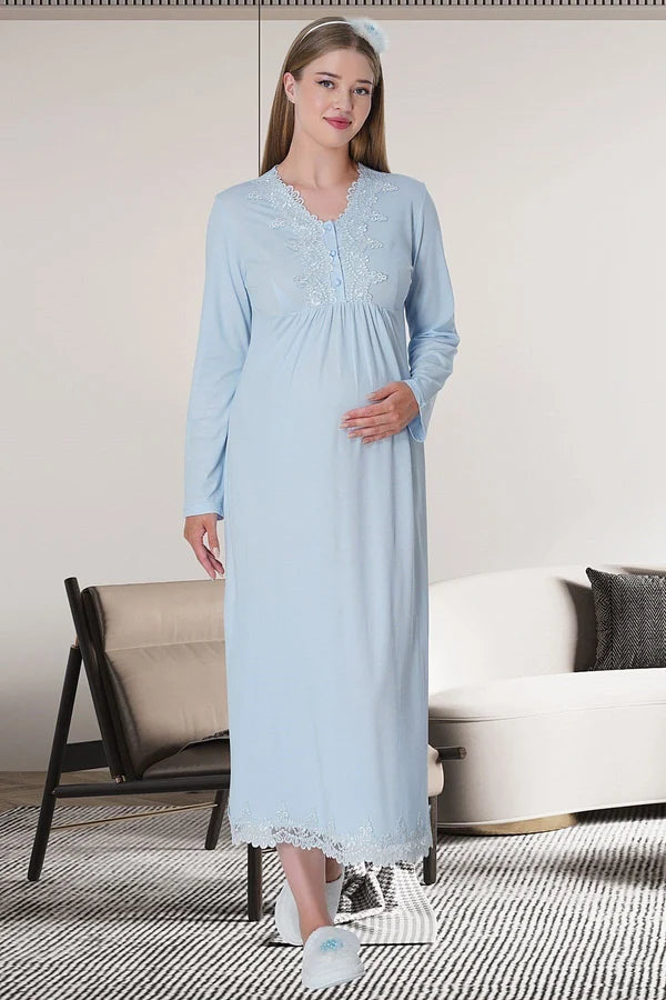 Önden Düğmeli Lohusa Hamile Gecelik Mavi - 1512