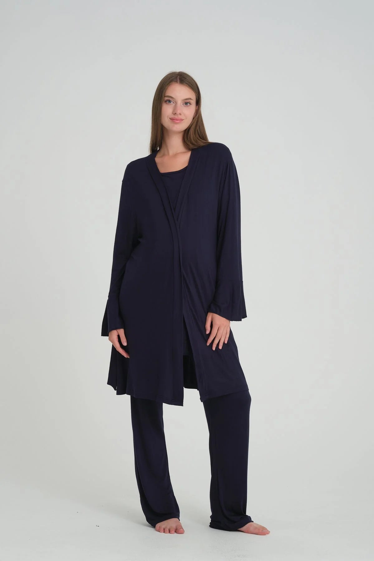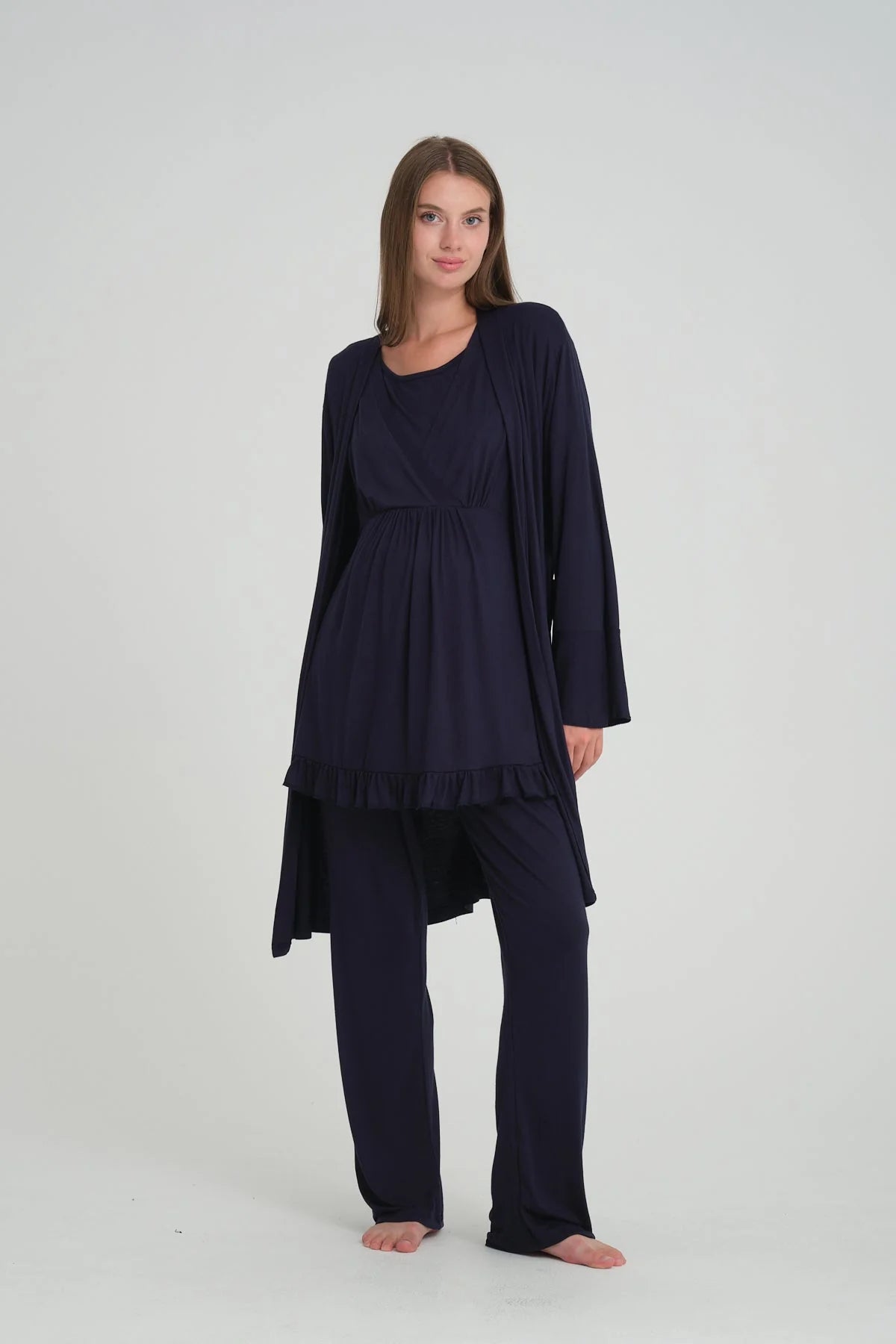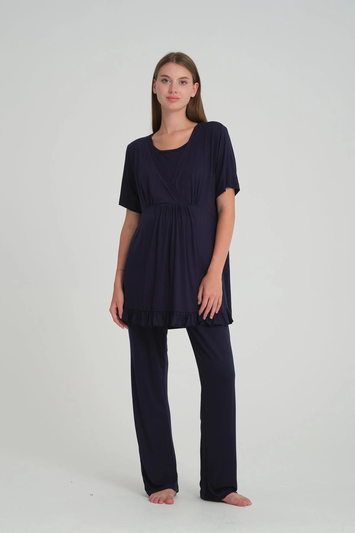 Doğum öncesi ve sonrası kullanım için ideal, konforlu ve şık sabahlıklı lohusa Pijama takımı. Emzirme kolaylığı sunan pratik yapısı ve yumuşak dokusuyla hem hastane çıkışı hem evde kullanım için uygundur.