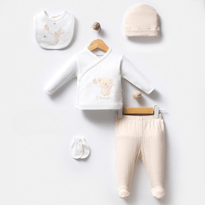 Sarılan Ayıcık Desenli Hastane Çıkışı 5'Li Bej- 047.20123.20