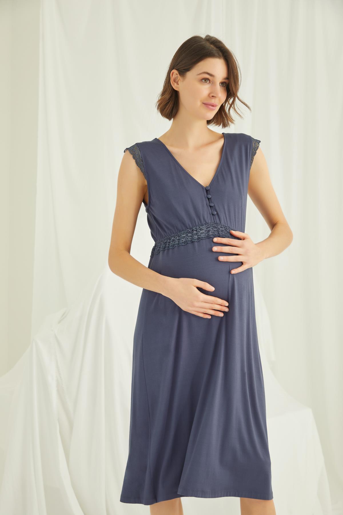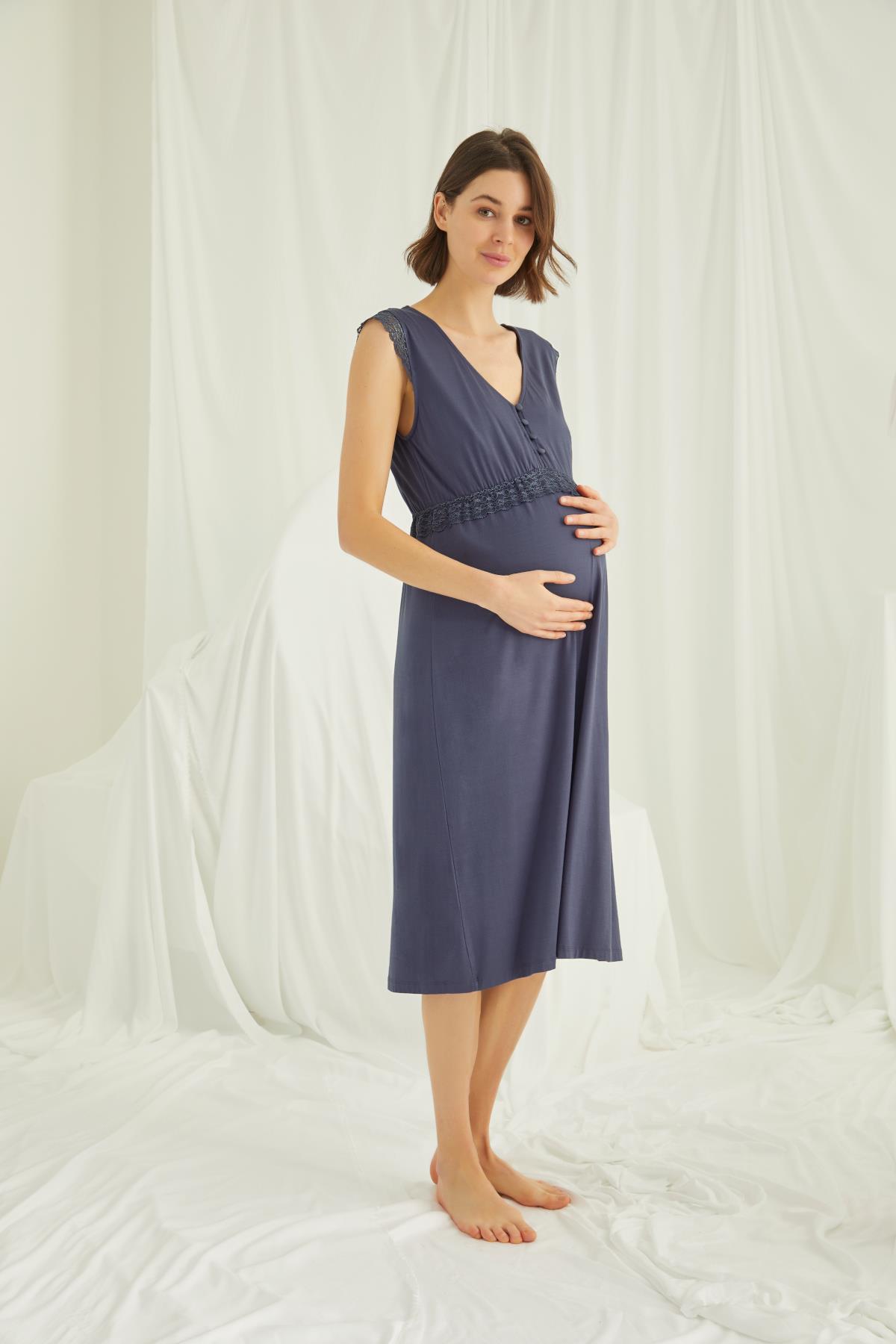 Sıfır Kol Önden Düğmeli Lohusa Hamile Gecelik 18448