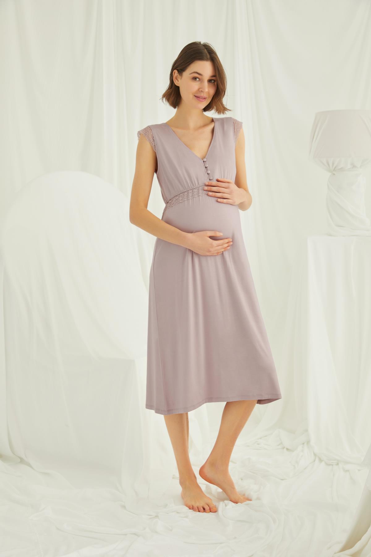 Sıfır kol Önden Düğmeli Lohusa Hamile Gecelik 18449