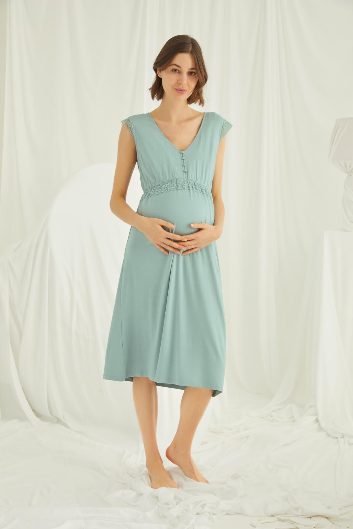 Sıfır Kol Önden Düğmeli Lohusa Hamile Gecelik 18466