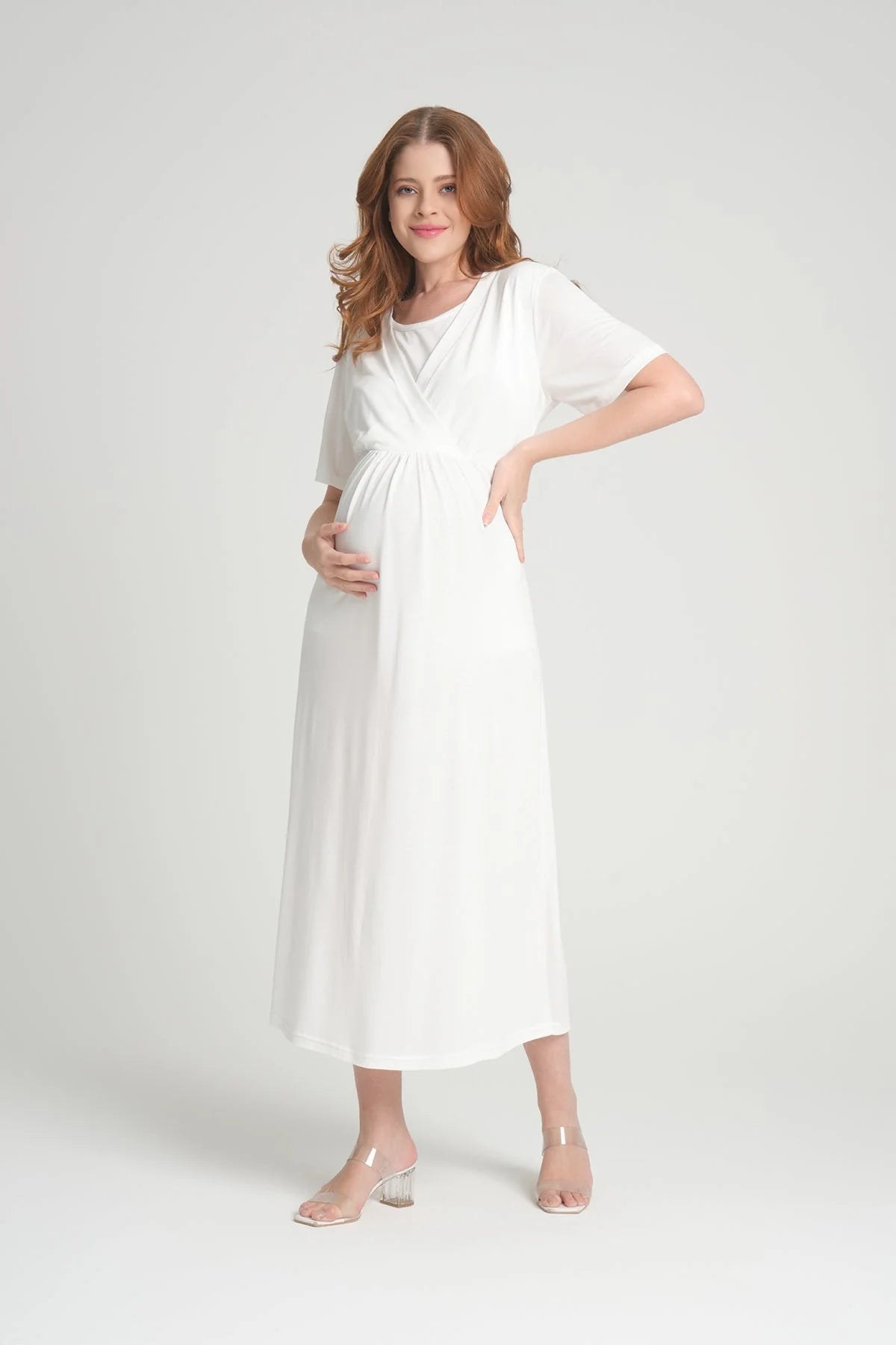 Doğum öncesi ve sonrası kullanım için ideal, konforlu ve şık sabahlıklı lohusa gecelik takımı. Emzirme kolaylığı sunan pratik yapısı ve yumuşak dokusuyla hem hastane çıkışı hem evde kullanım için uygundur.