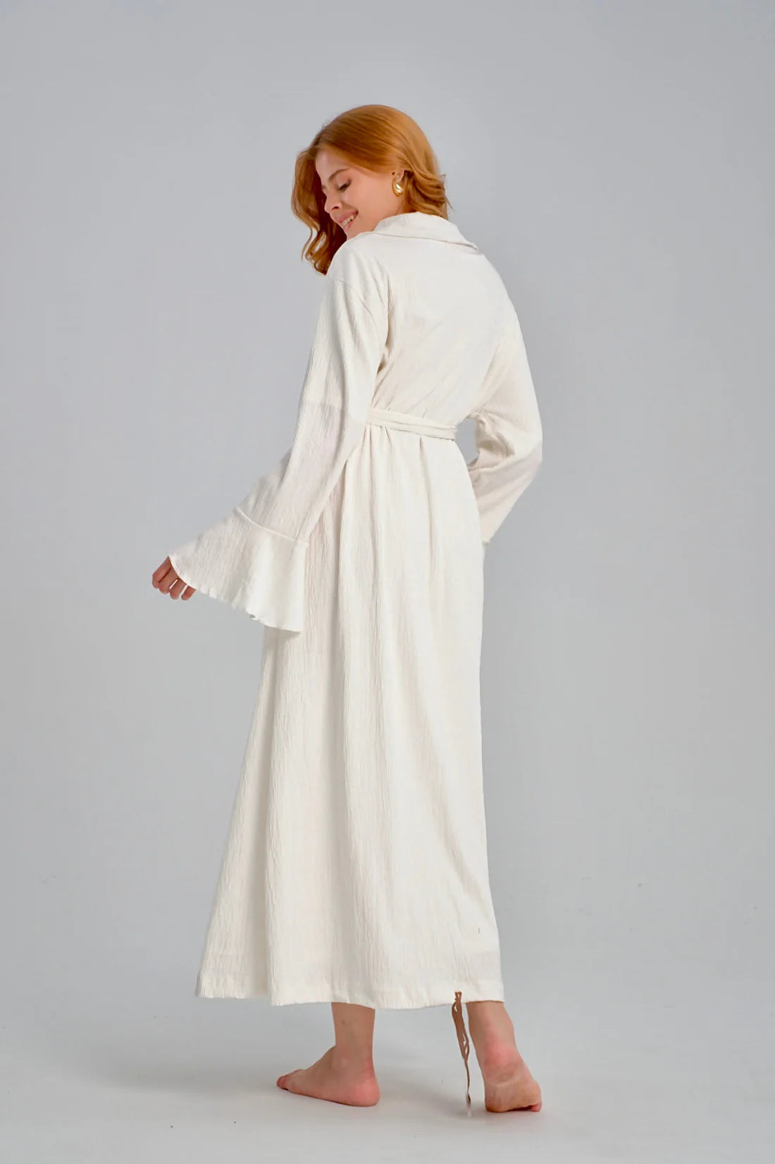 Yumuşak Dokulu Jakar Sabahlıklı Lohusa Hamile Gecelik Takımı Ekru - 541