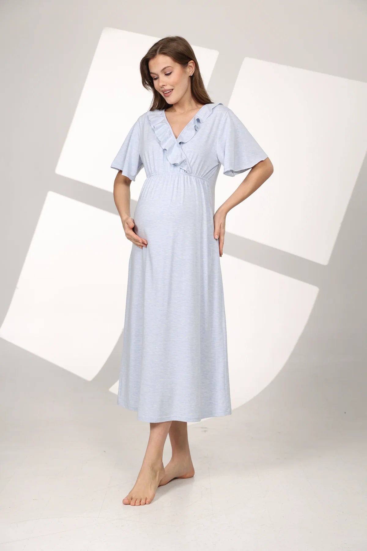 Doğum öncesi ve sonrası kullanım için ideal, konforlu ve şık sabahlıklı lohusa gecelik takımı. Emzirme kolaylığı sunan pratik yapısı ve yumuşak dokusuyla hem hastane çıkışı hem evde kullanım için uygundur.